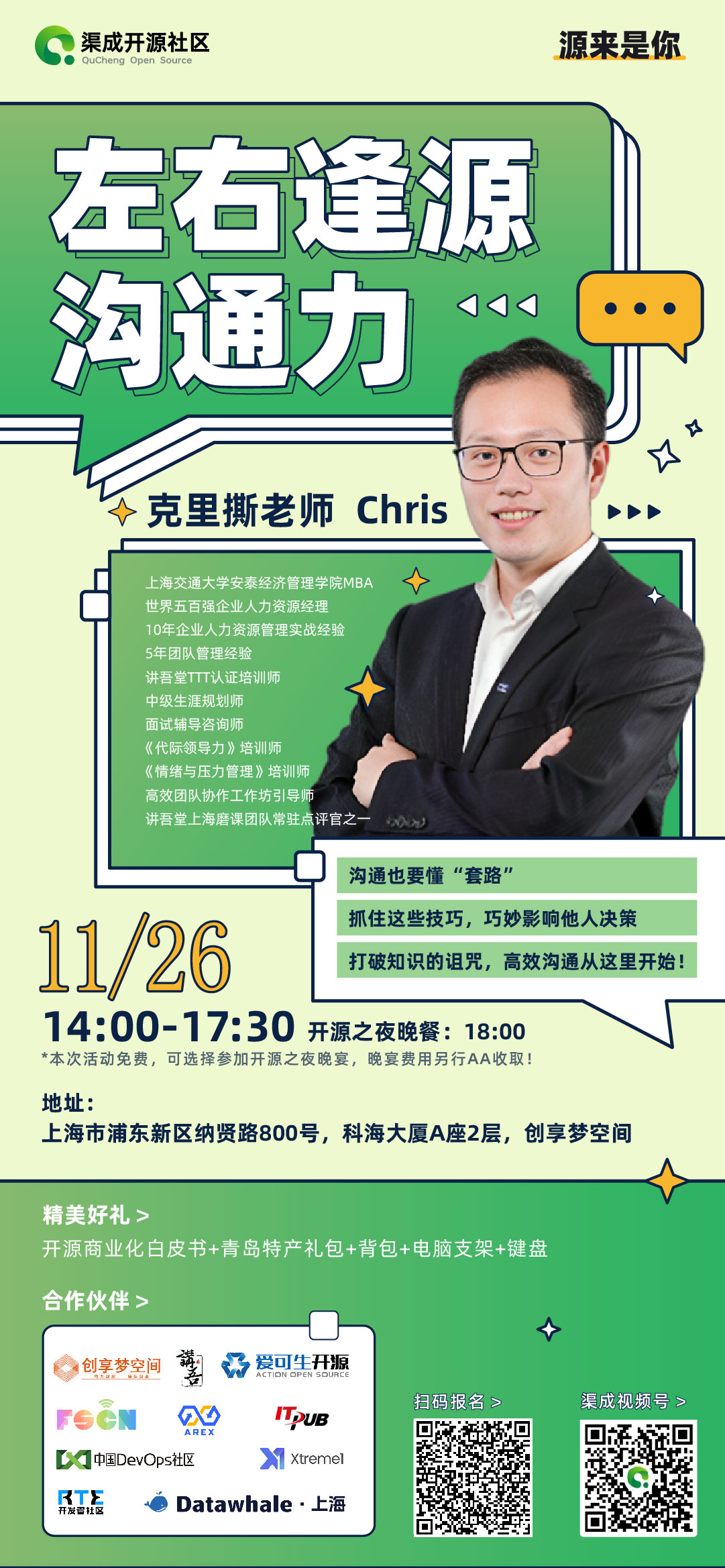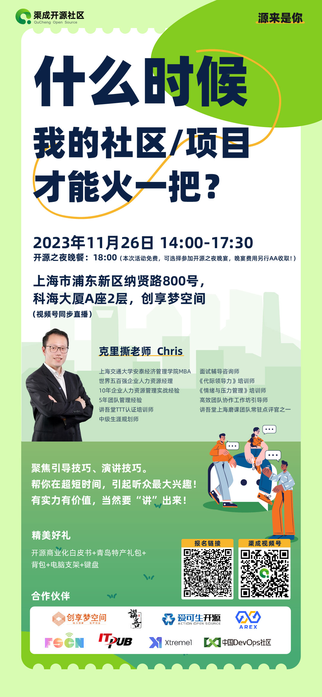 【活动时间】11月26日14:00-17:30 (18:00开始开源之夜晚宴)