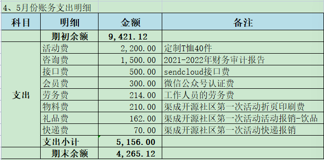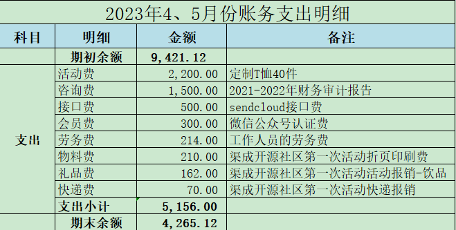 渠成开源支出明细账(2023年4月-2023年5月)