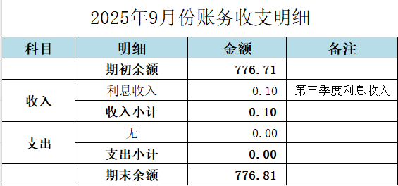 渠成开源收支明细账(2025年09月)