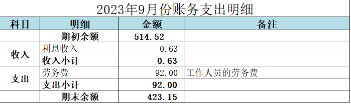 渠成开源收支明细账(2023年9月)