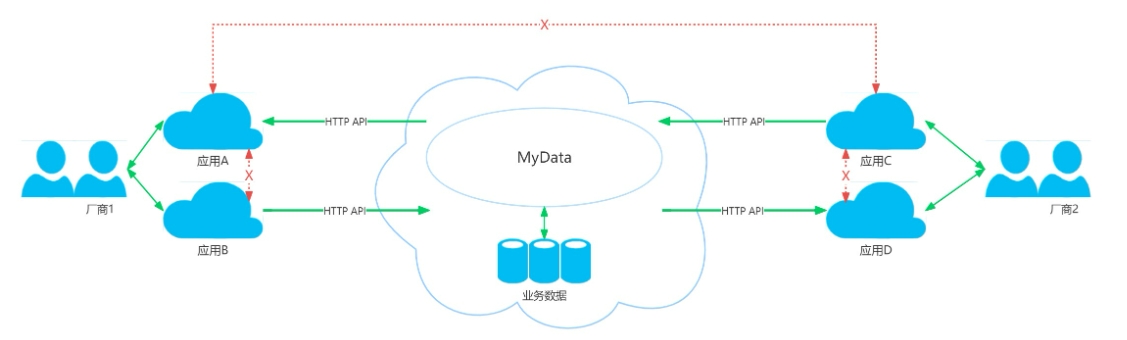 - 简化结构 MyData扮演数据中心的角色,与所有应用都是一对一的关系,因此应用只需与MyData对接 无需与其他应用对接;