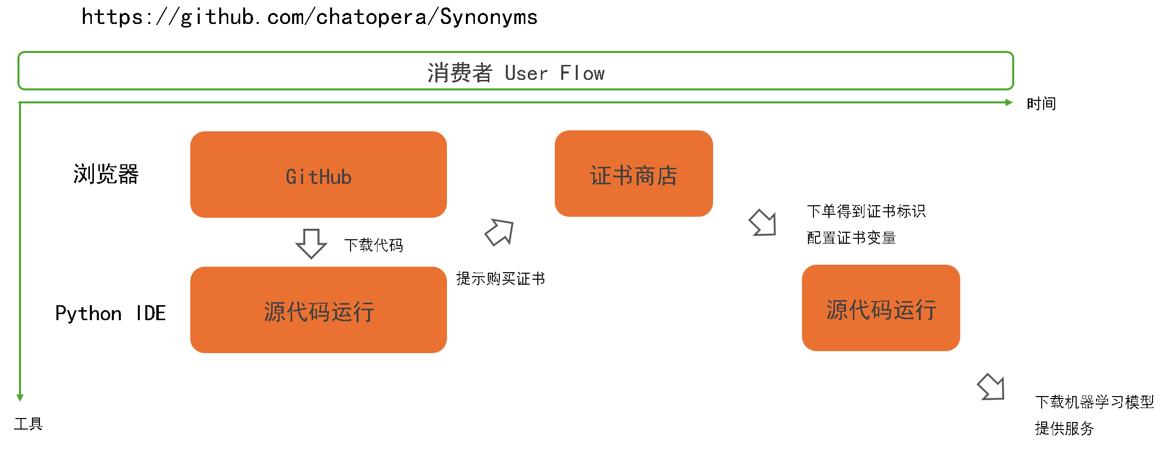 5.消费者购买证书后,软件运行提供服务;