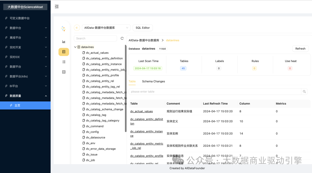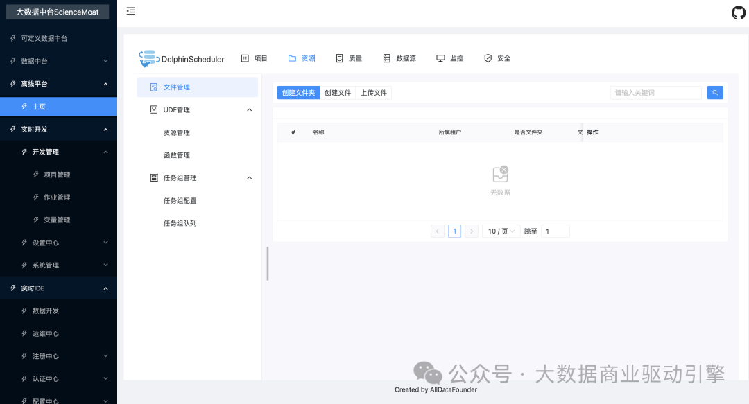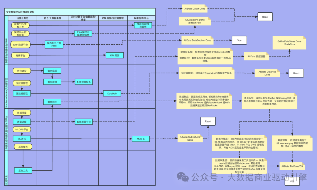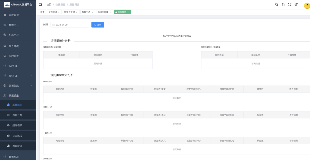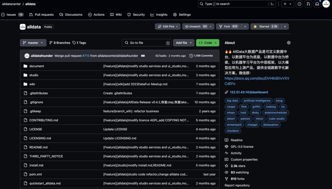 AllData大数据产品是可定义数据中台,以数据平台为底座,以数据中台为桥梁,以机器学习平台为中层框架,以大模型应用为上游产品,提供全链路数字化解决方案。
