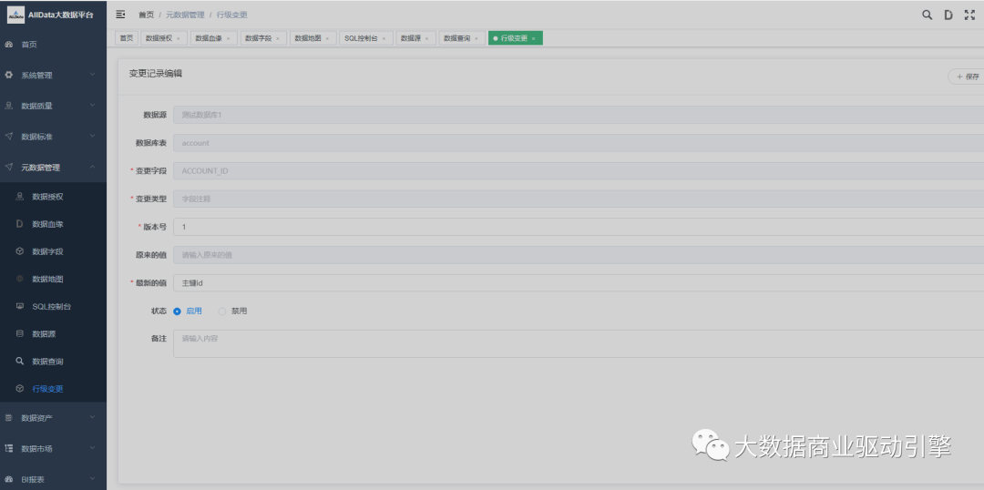 方案提供便利,使得企业业务部门能最低成本获取数据中台源码,建设具有业务特色强绑定的数据中台,对内节省开发运维成本,提高数据管理与价值挖掘分析的能力,对外能在业界同行业务中,使用alldata数据中台获得更大的商业成功,提升企业在同行业的核心竞争力,创造无与伦比的商业价值。