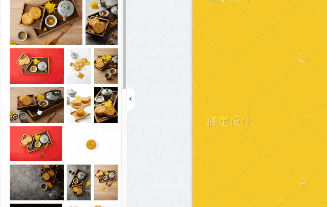 笔者因为之前有个小项目需要经常参考稿定设计,一直有留意其元素拖拽的效果(如下图),而接下来我将以这种效果为蓝本,使用原生 JS 实现一个富有动感的 自定义拖拽 效果,话不多说直接开摸。