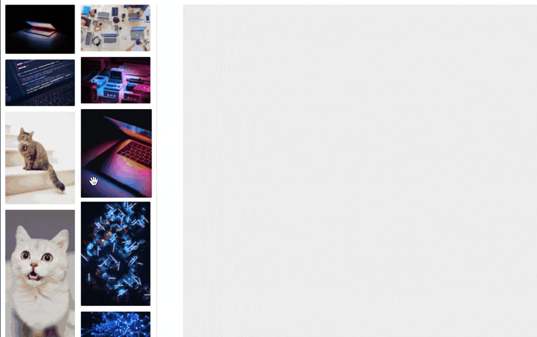我的优化思路是利用浏览器加载过同一张图片就会优先读缓存的机制,先用一个Image加载原图,等其加载完毕再把拖拽元素的src改成原图,这样浏览器会"自动"帮我们优化加载过程,只需要注意一点,由于是异步任务,一定要做好对应标记,不然手速快的时候控制不好触发顺序。