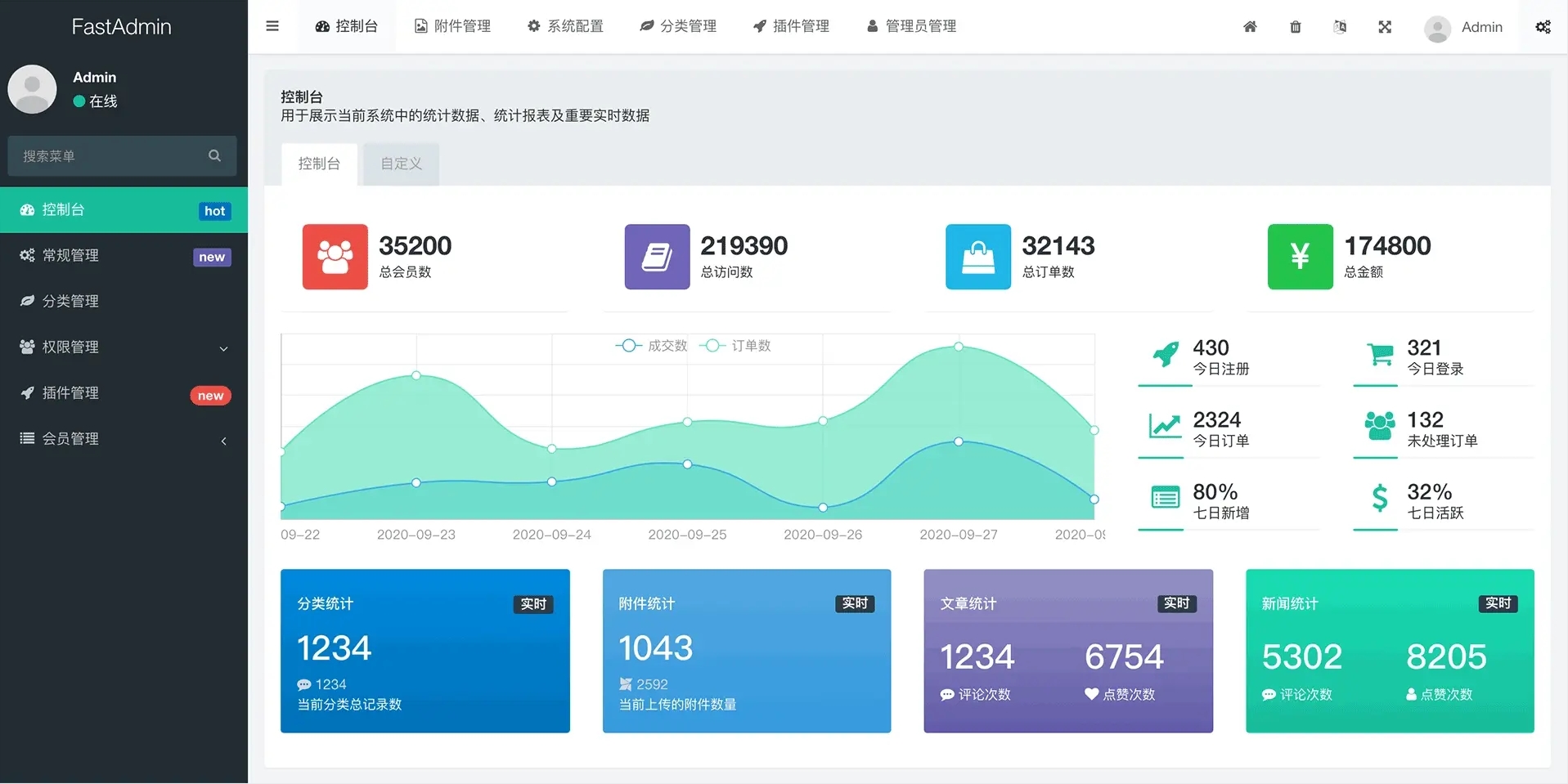 FastAdmin 是一款基于 PHP+ Bootstrap 开源后台框架,采用的是 Apache2 商业友好开源协议,开源且可以免费商用,无需单独授权。框架支持一键生成 CRUD,可根据数据表,一键自动生成控制器、模型、视图、JS、语言包、菜单、回收站等。