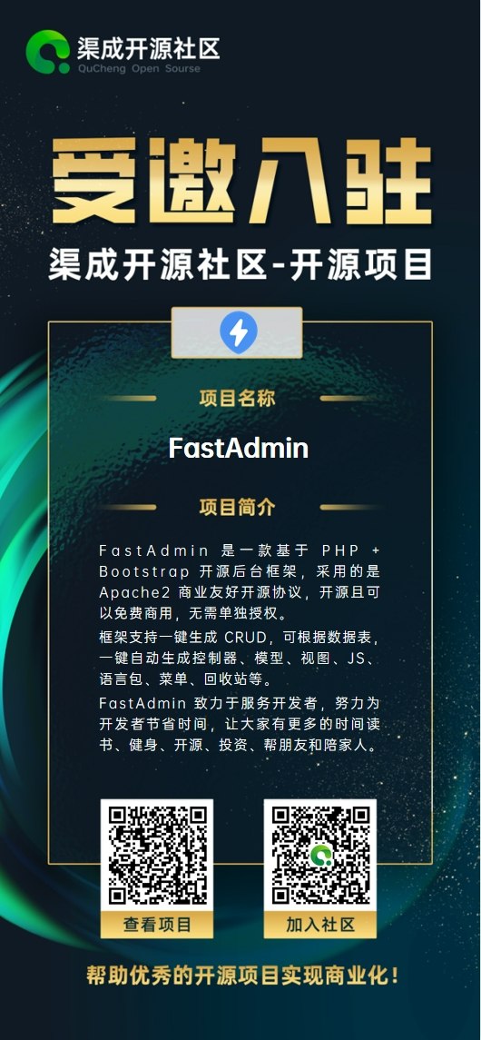 欢迎FastAdmin 极速后台开源框架加入渠成开源社区!