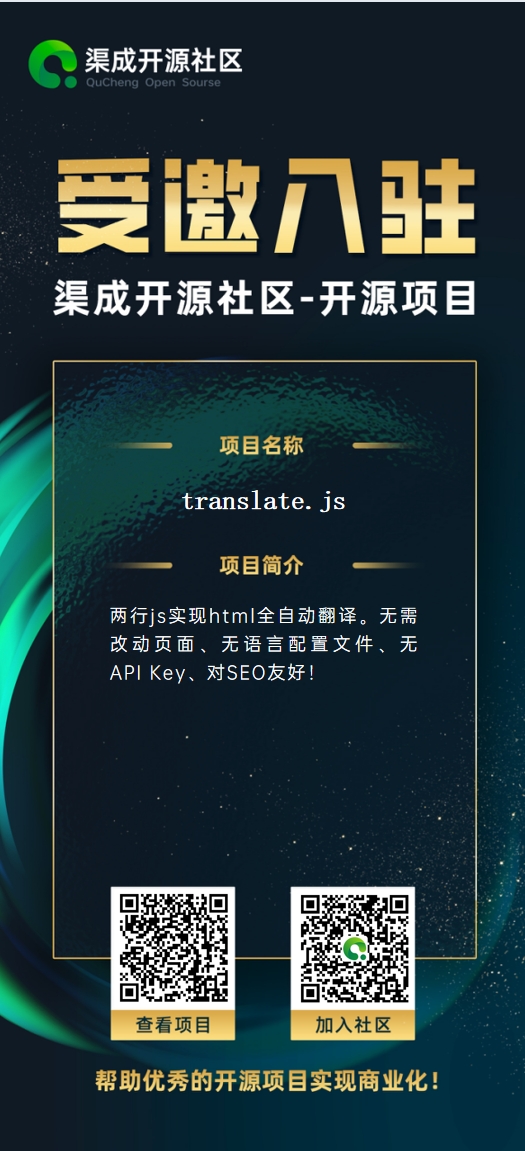 两行js实现html全自动翻译。无需改动页面、无语言配置文件、无API Key、对SEO友好!特性说明
